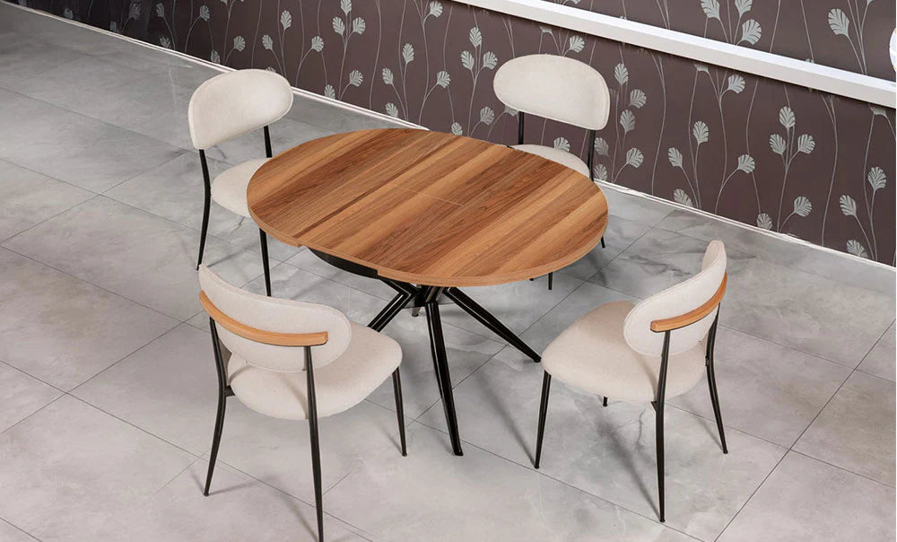 تعمل طاولة الطعام المستديرة بشكل جيد في المساحات الصغيرة والغرف المربعة. تمنح الجميع مقعدًا متساويًا وتحافظ على شعور المساحة بالانفتاح. وبما أنها لا تحتوي على زوايا حادة، فهي تسمح بحركة أفضل حول الطاولة وتجعل الغرفة تبدو أقل ازدحامًا.