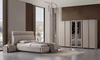 - Includes : 1 king-size bed , 2 nightstands, dresser with mirror ,pouf for dresser Wardrobe